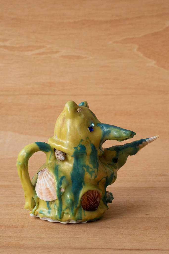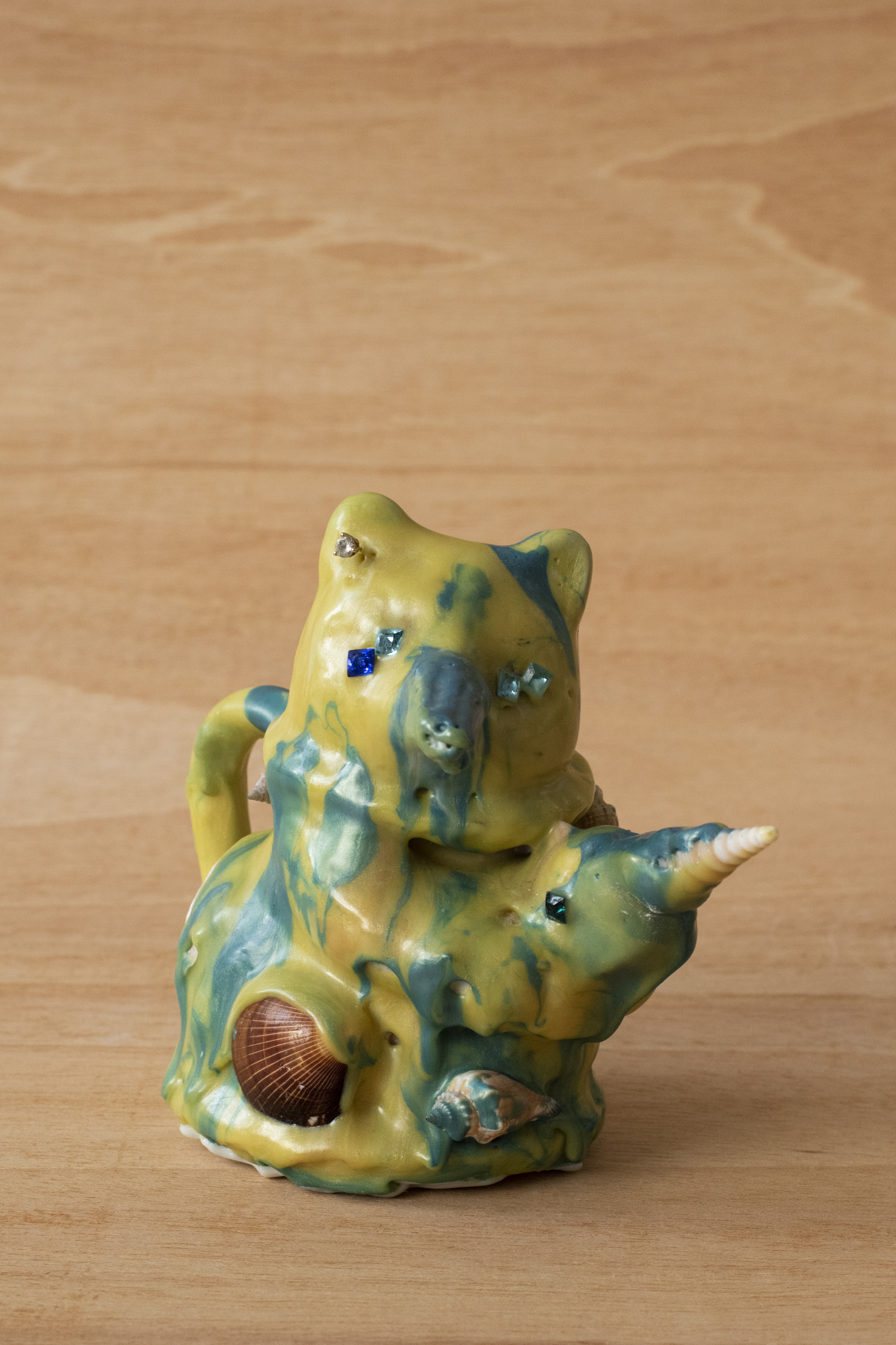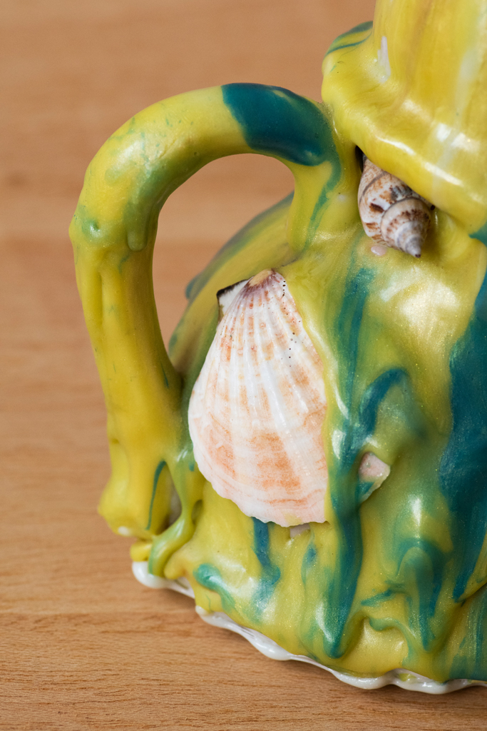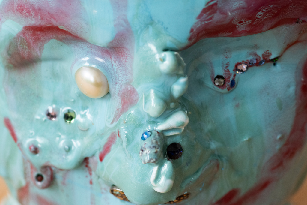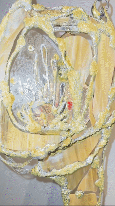 Charity shop trinkets, Dollar store buys, and misc. found objects covered in wax, jewelry, shells, and MISC>